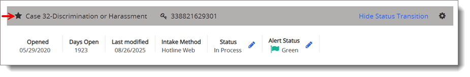 Note: Adding or removing a case from the Watchlist is not recorded in the case history.