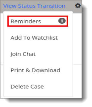 The Reminders option allows you to receive email alerts before the due dates and times set for important activities. A counter shows the number of reminders you have set for a case.